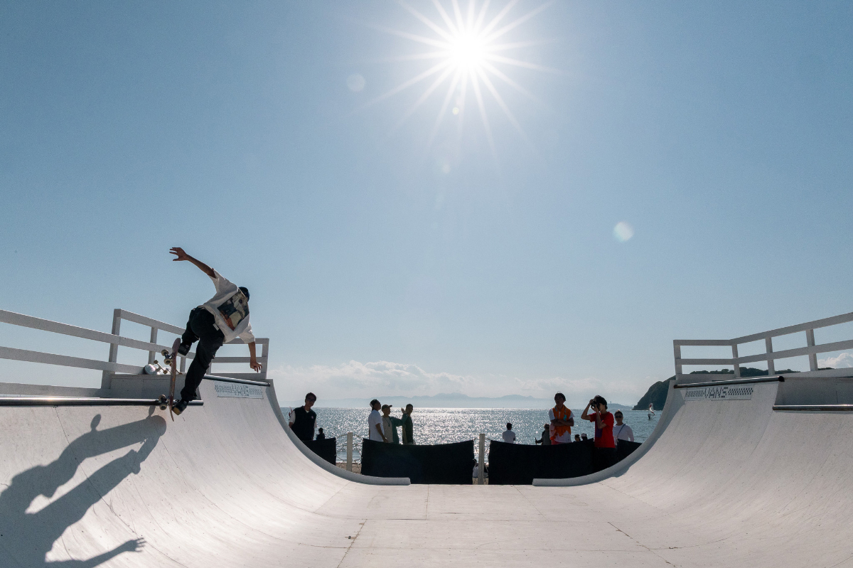 会場では、日替わりで楽しめるフードコートや、毎年賑わう縁ある人達が出店するバザール、潮風を感じながら学ぶワークショップ、予約制のレストランのほか、ここでしか体験できない砂浜のスケートランプ、海辺のメリーゴーラウンドなど日中楽しめるテントや華やかなブースが並びます。
