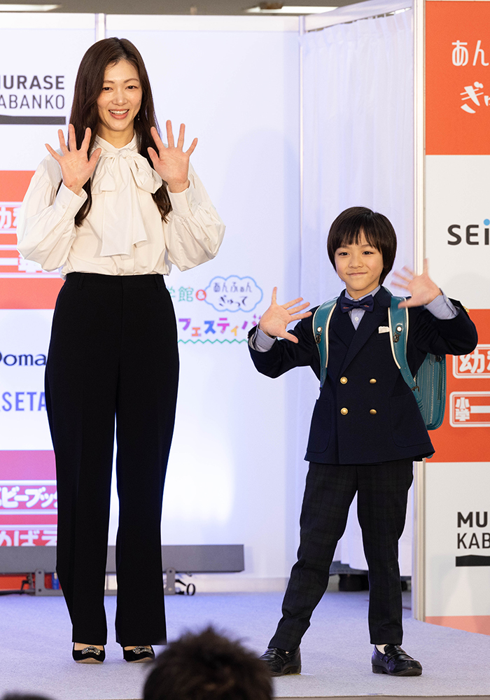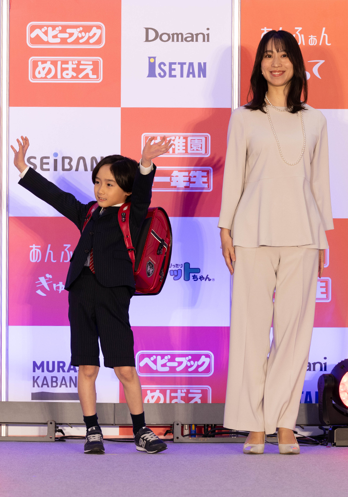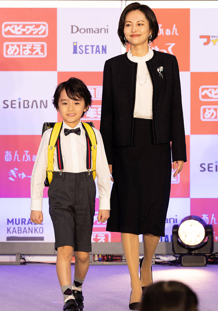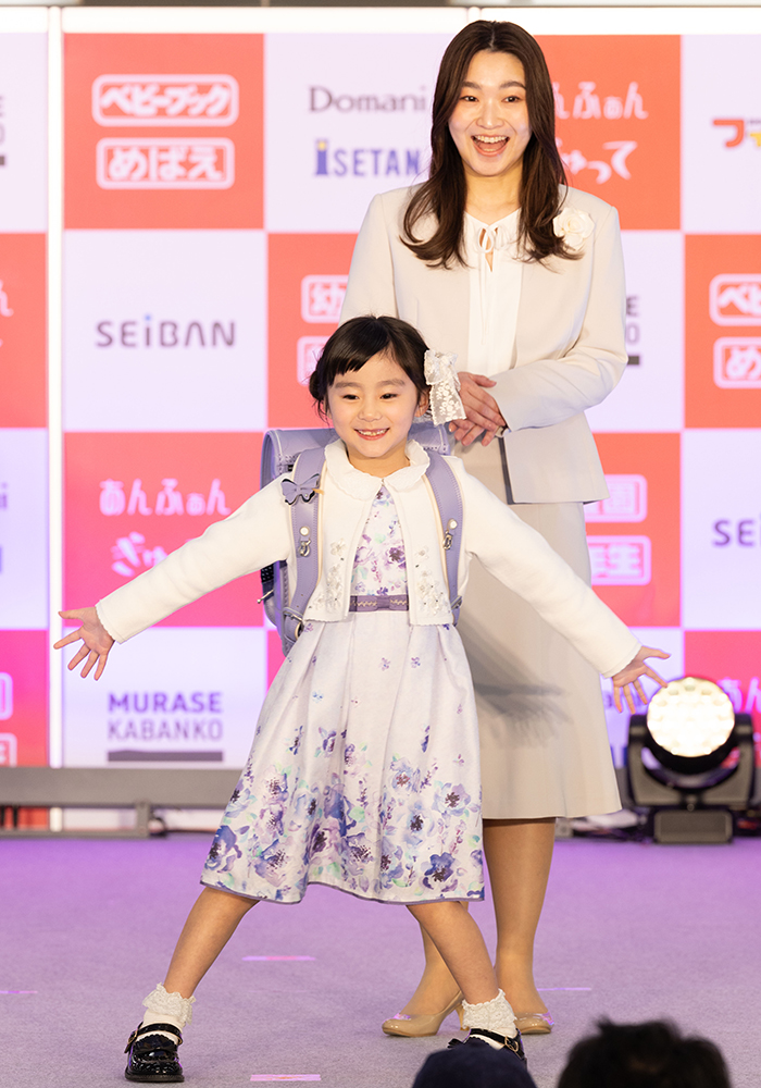 有名ランドセルメーカーの新作をステージで紹介。時代とともに進化を続ける最新ランドセルに、キッズモデルも大興奮でした!