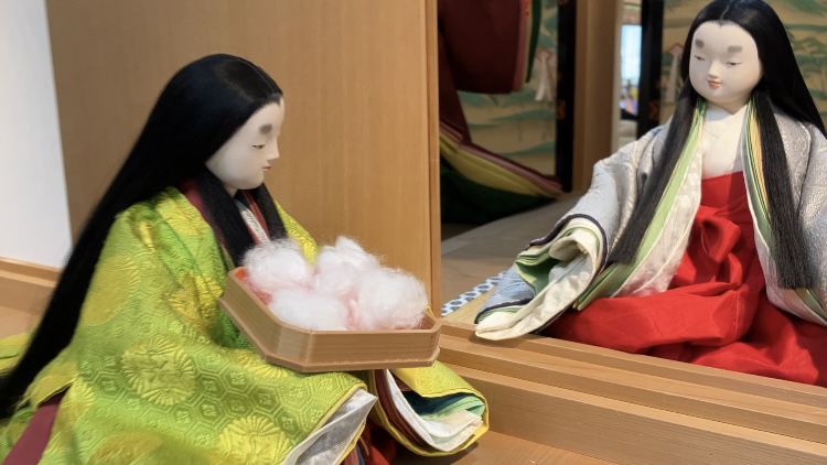 そして、この真綿の色と乗せる菊の花の色も江戸時代頃の宮中では決まっていたという。赤菊には白い真綿、黄菊には赤い真綿、白菊には黄色の真綿という具合に。いちひめさんでの菊の被せ綿もその組み合わせで行われていた。色の組み合わせの美しさまで気を配るあたり、江戸時代の宮中の女性陣の「美」に対する拘りが垣間見れて微笑ましい。