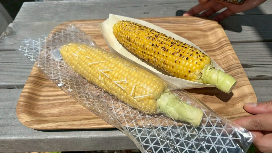 収穫体験が行われるのは、7月下旬から9月中旬のわずかな期間。実際に収穫された生のとうもろこしを食べると、その貴重な時期にしか味わえない甘さに驚かされる。青臭さがなく、シャクシャクした食感で和梨のような甘さを感じさせる。