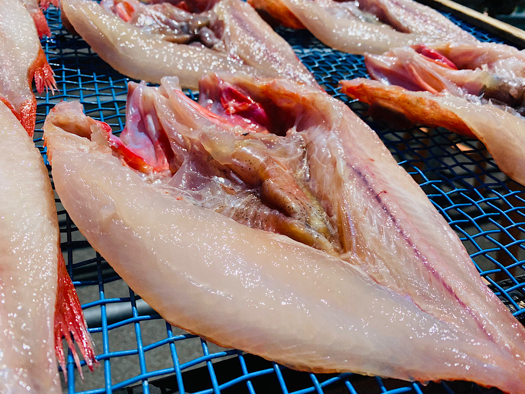 そんな時に、友人を助ける形で干物の世界に足を踏み入れることに。同級生の紹介で水産会社に入り、初めて包丁を握る。その後、友人が営む老舗干物店の人手不足を補うため、干物づくりを手伝うことになったのが大きな転機となった。「最初は信念があったわけではなく、友達が困っているからという気持ちだった」と藤間さんは振り返る。しかし、この偶然の出会いが、彼を干物の奥深い世界へと導いていった。