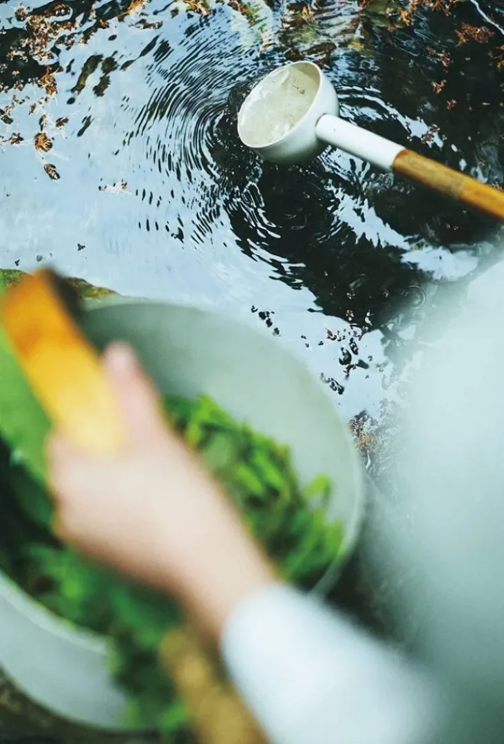 長年放置された人工林が生まれ変わり、優しい光が差し込む森。こちらでは周辺の植物を採ってヴィヒタのように束ね、澄んだ湧き水を汲んでロウリュを楽しめます。サウナで温められた体を冷ます、清らかな水流と沢が最高の水風呂に♪ 北欧の森との共生を思わせるセルフビルドのサウナ小屋で、薪割りもかけがえのない体験でした!