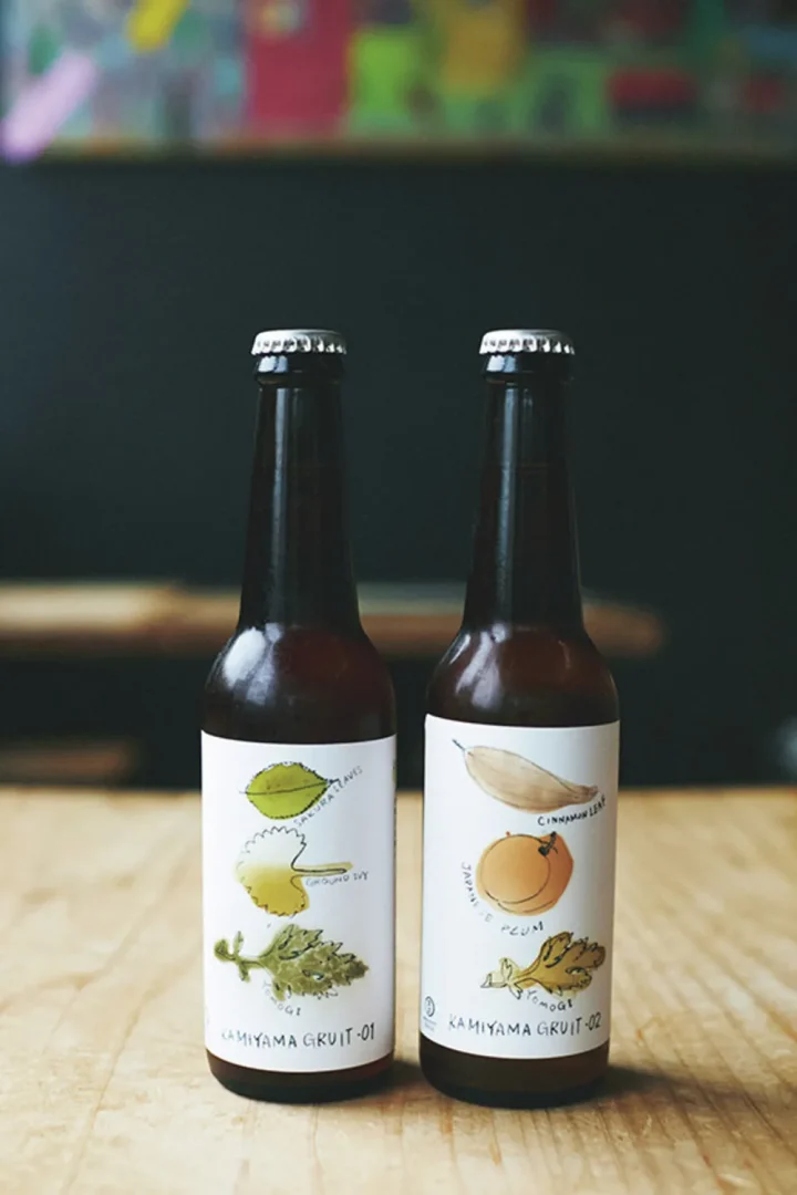 中央のボトルは、70年以上種を受け継ぐ神山小麦を使った〝SHIWA SHIWA ALE〟。「しわしわいきよ」=ゆっくり、のんびりいこうを表す阿波弁から着想。