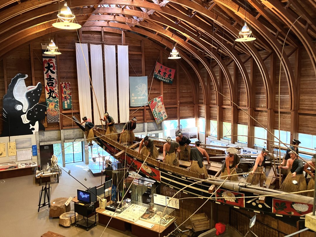 カツオ漁の臨場感あふれる巨大展示。下からの眺めは、自分が海の中にいるような感覚になる